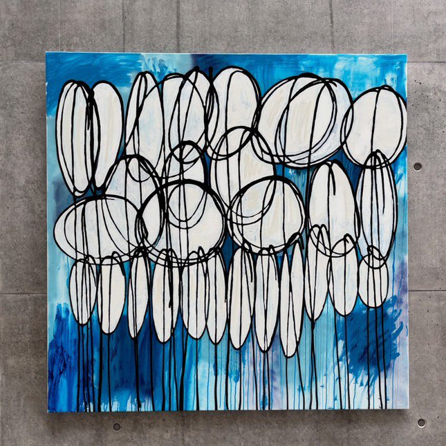 In his series Línumál, Vikar continues his investigation into painting as a medium of meaning and perception. The works build a visual language from repeated linear formations, where the line becomes structure, symbol, movement, and trace.